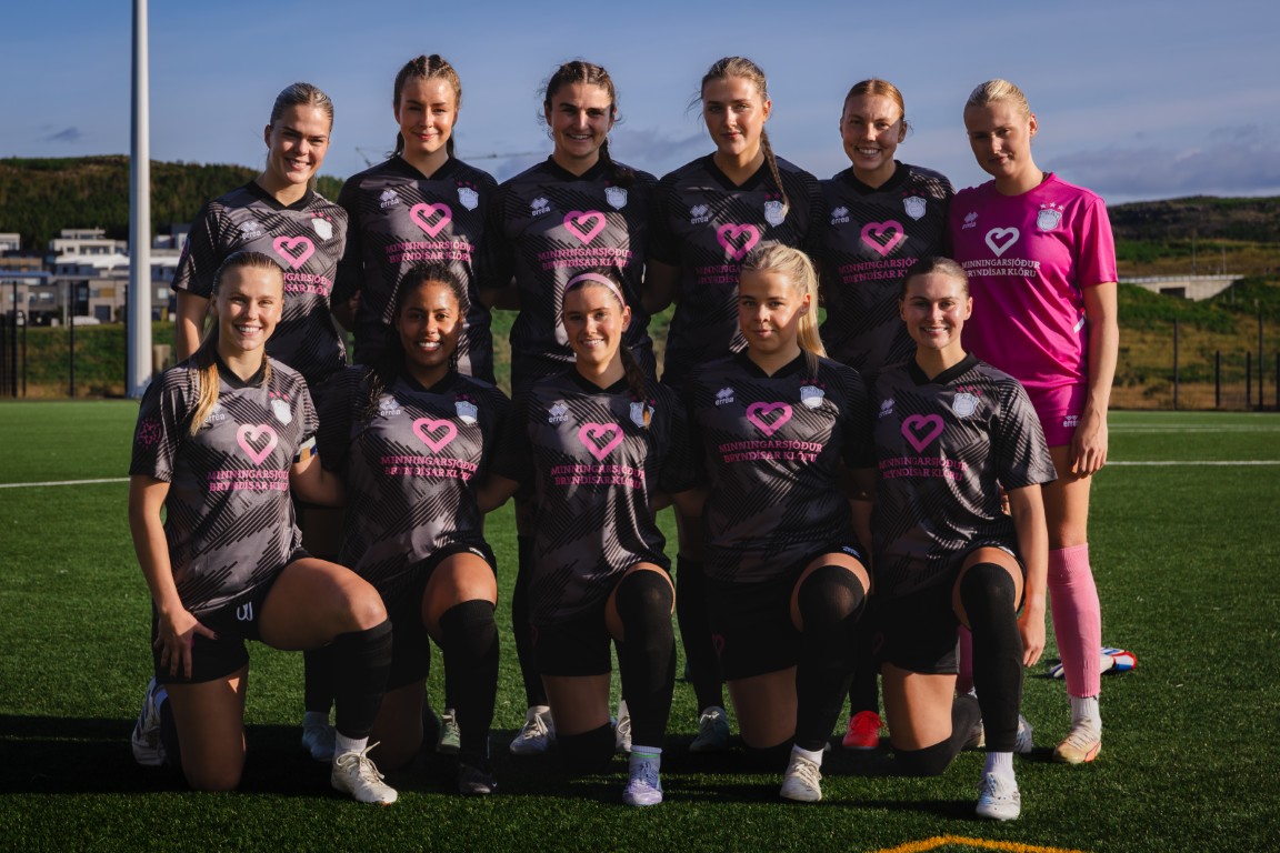 Leikmenn Fram klæddust sérhönnuðum treyjum að þessu tilefni og skörtuðu þeir bleiku merki Minningarsjóðsins.